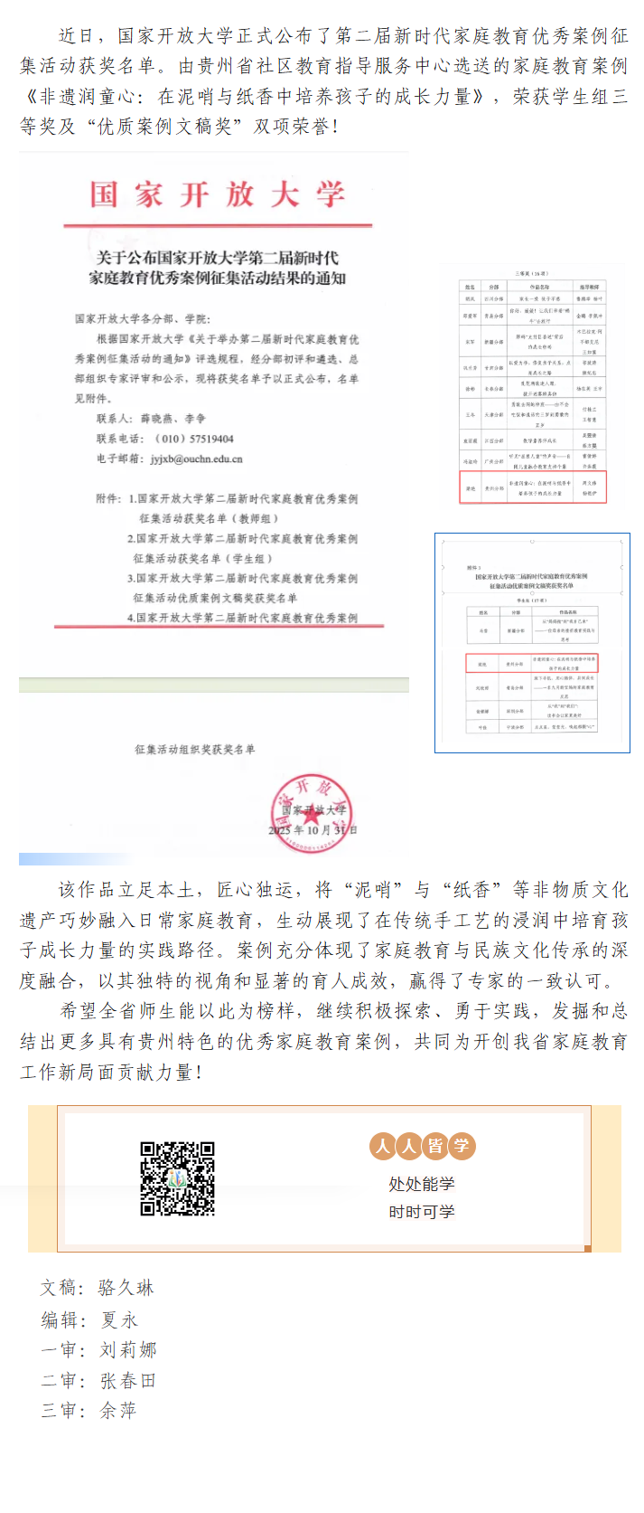 喜 报·我省在国家开放大学第二届新时代家庭教育优秀案例征集活动中斩获佳绩
